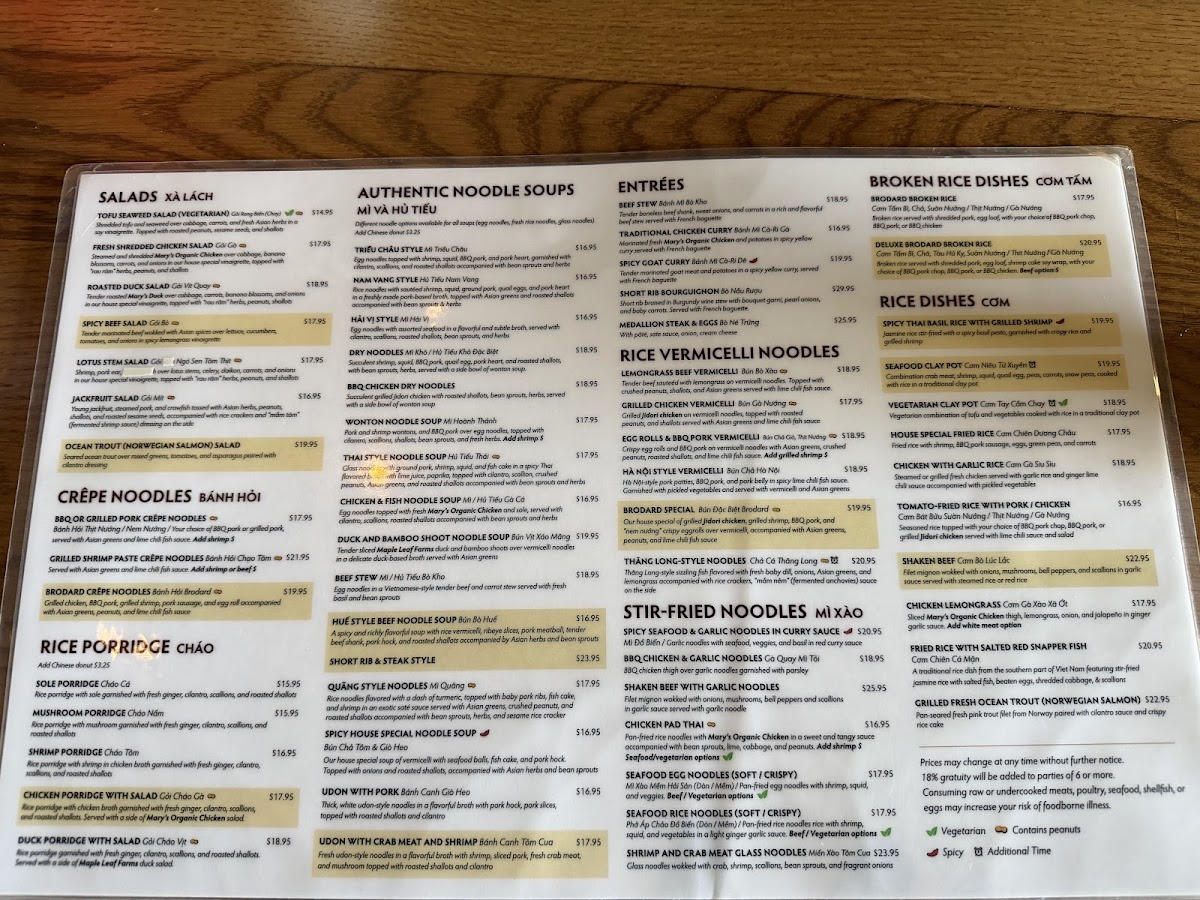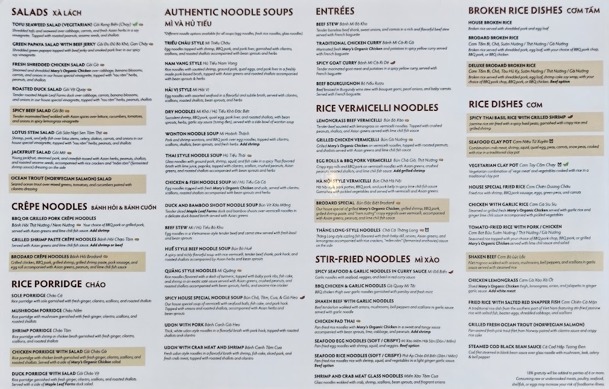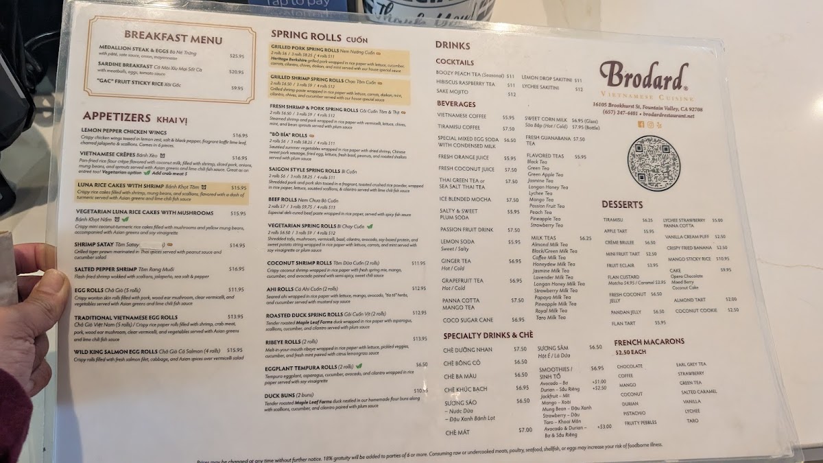 Brodard Restaurant offers a diverse menu that blends traditional Vietnamese flavors with the comforting familiarity of a bakery and dessert café. The selection is well-suited for a variety of occasions, whether you’re stopping by for a light afternoon coffee or sitting down for a relaxed dinner with friends or family.